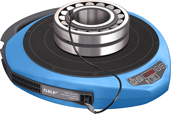 The SKF TWIM 15 bearing heater uses an induction heating plate to bring the bearing or component to the optimal temperature, which is typically 90° C hotter than the mounting shaft. Induction heating is the quickest, safest, and most convenient method for hot mounting. This method of optimising bearing temperature for mounting is cleaner, safer, and more portable.