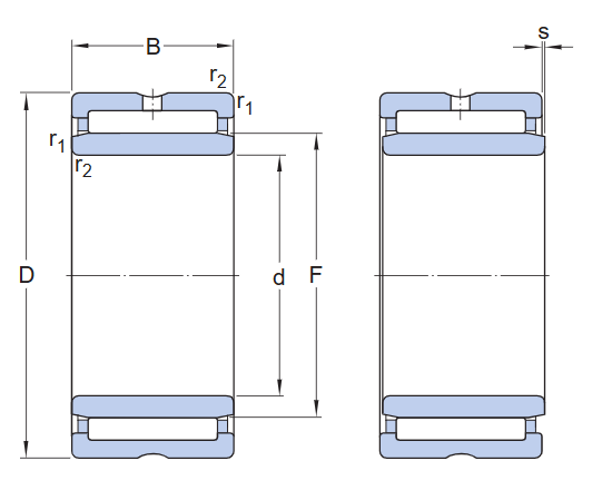 Owing to their large number of rollers, the bearings have a high load carrying capacity. The outer ring includes two integral flanges to guide the bearing axially and an annular groove with one or more lubrication holes to facilitate relubrication.