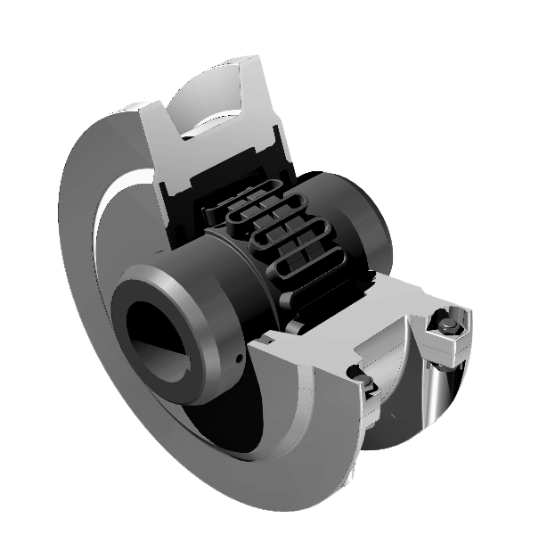 Combines the torque capacity of gear couplings with the torsional flexibility of elastomer couplings. The metallic grid coupling offers up to 30% damping effect – unique to this coupling class.